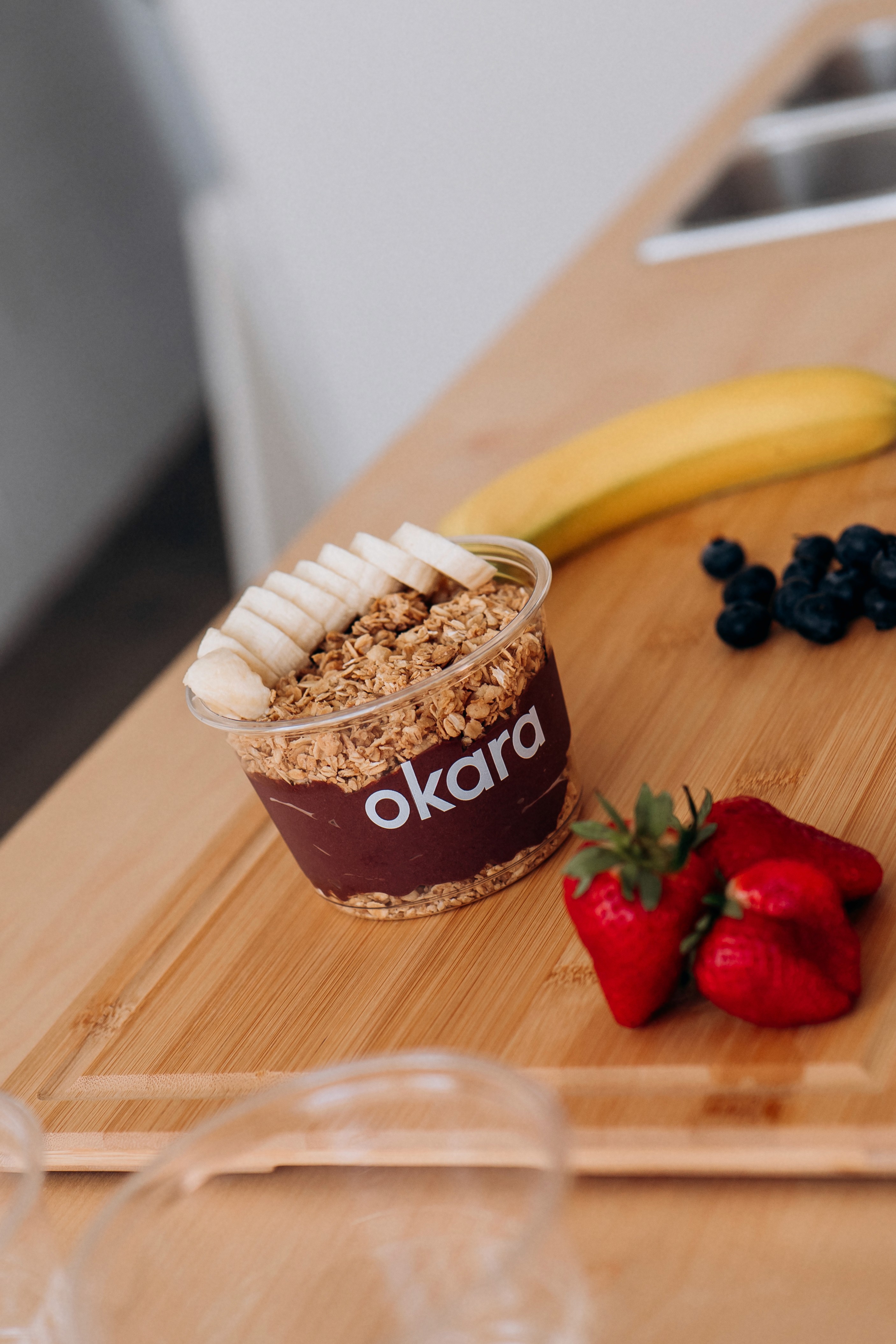 açaí base + granola, banana, strawberry, blueberry, peanut butter